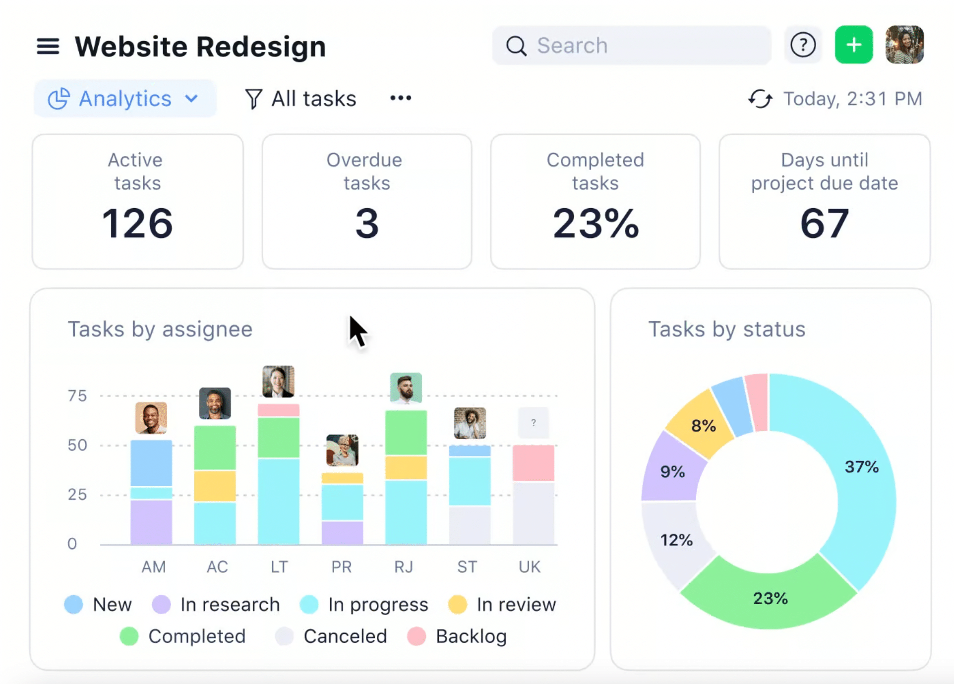 Asana allows you to create tasks, assign them to team members, set due dates, and track progress. You can add descriptions, attachments, and subtasks to provide detailed information and context for each one, providing a timeline and calendar views.