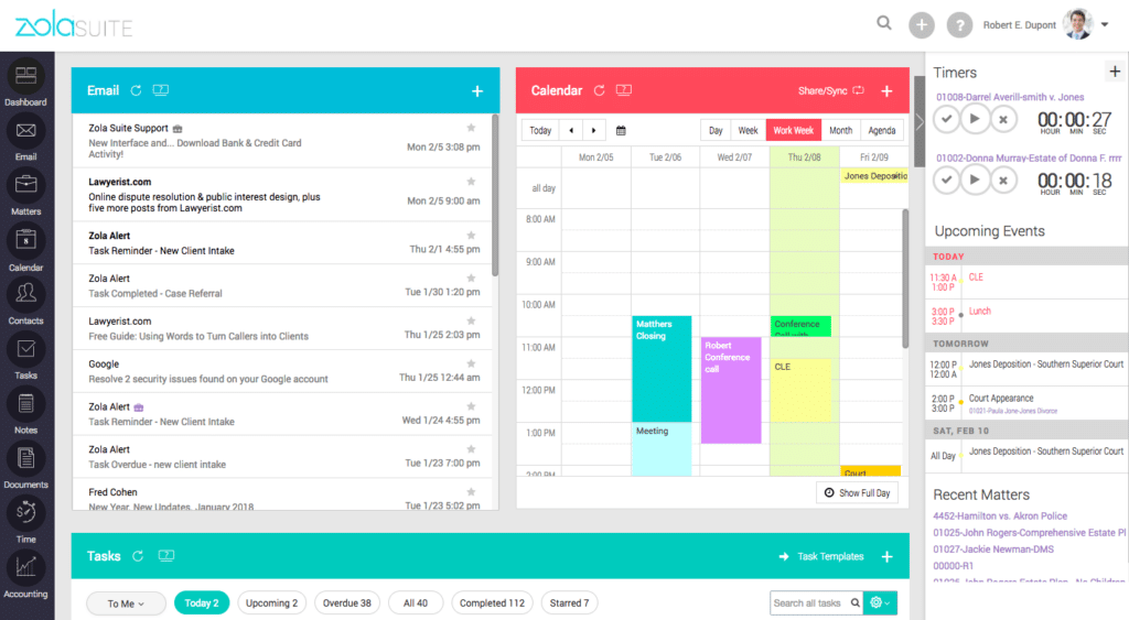 Zola Suite is one of the best time and billing software for attorneys that offers a comprehensive suite of legal practice management tools, including time tracking, billing, and document management features.