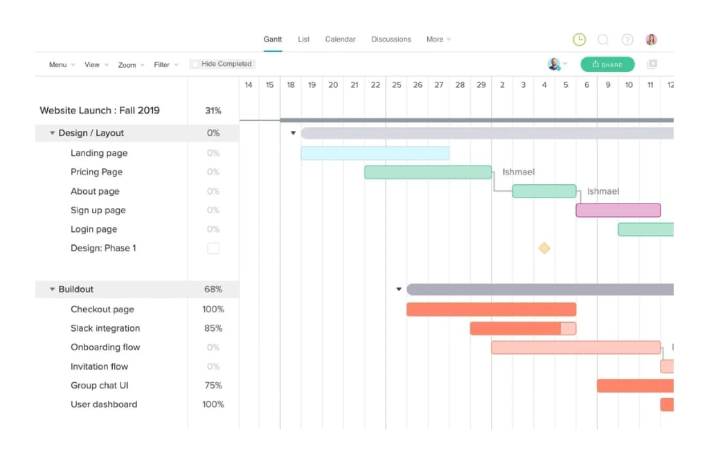 This is an incredible tool for the project life cycle phases, from planning tasks and delegating to monitoring your project’s progress. Being very intuitive, this on-the-go app combines tasks, resources, and a calendar.