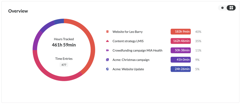 No matter if you work on a retainer fee or hourly rate – time spent on a project is the biggest cost you have to compare the income with. Counting the hours is the obvious thing to do but that shouldn’t be the only thing. To dive deeper into the costs we recommend to track as well the different activities for a project. You’ll see later exactly why.