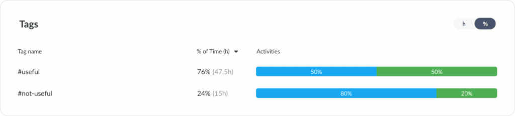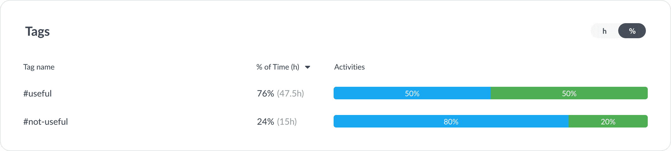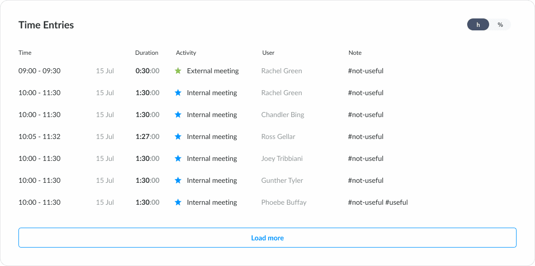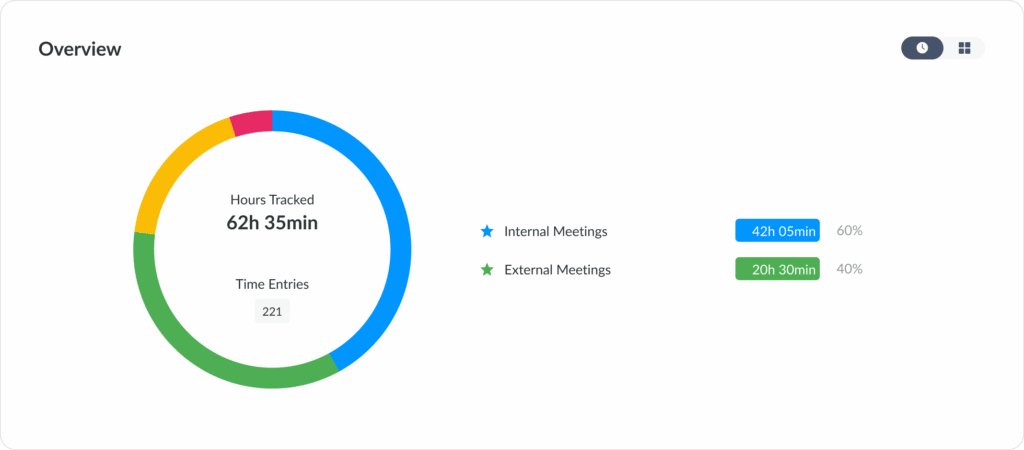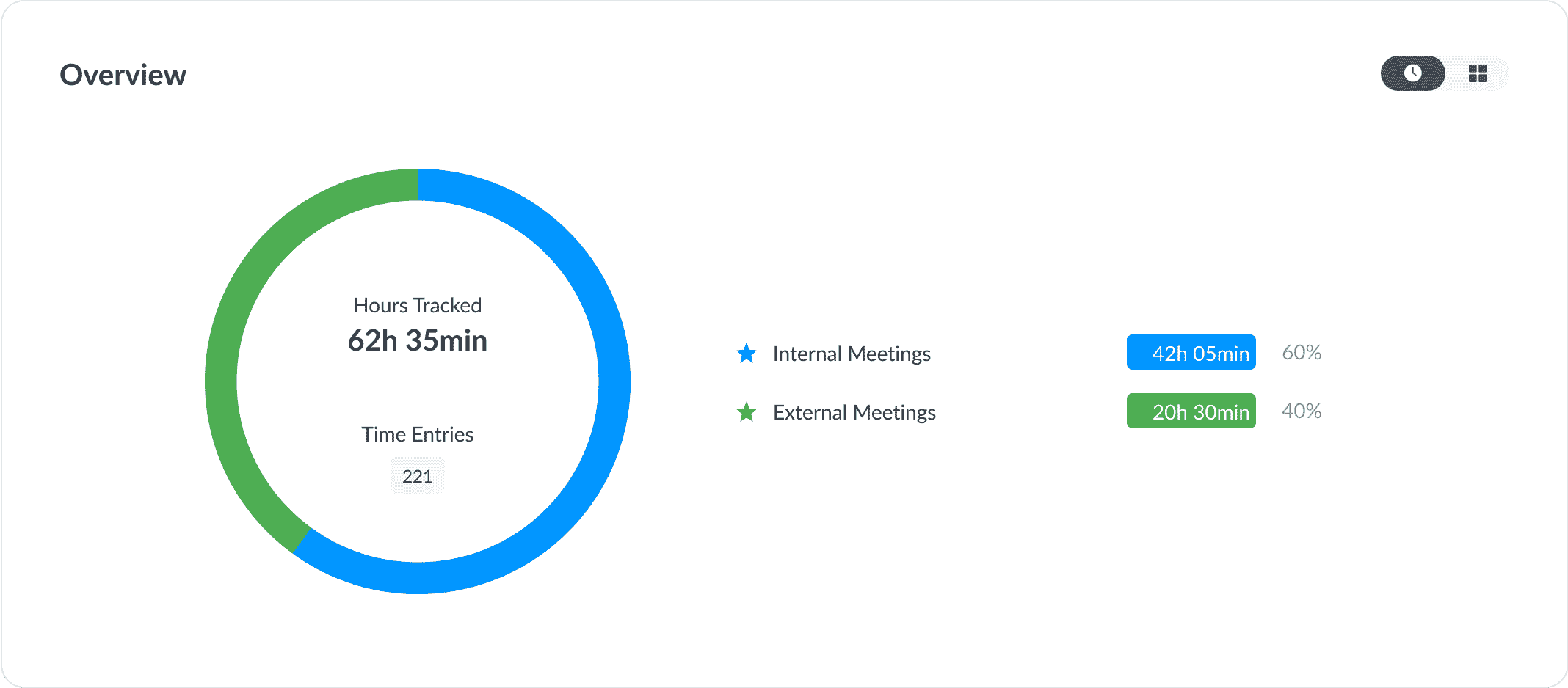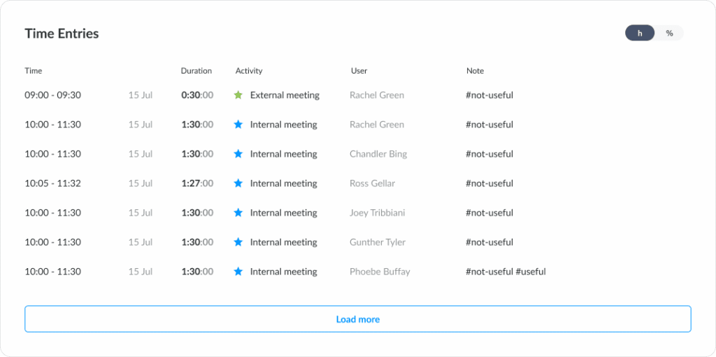 After a couple of weeks of tracking, you’ll have enough data to find ways to cut 20% of your meeting time which in some cases can free up even a full day of work.