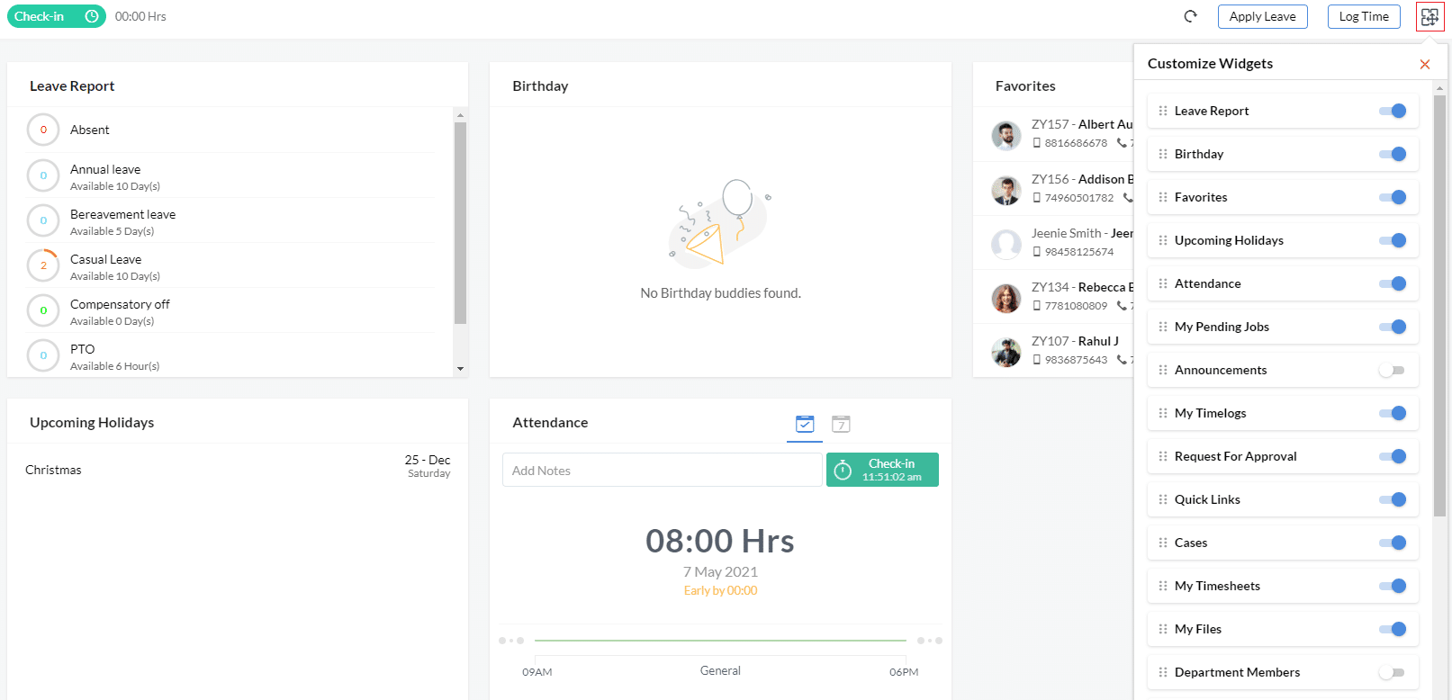 - Custom leave policies: administrators can configure and implement customized leave policies to match their organization’s specific requirements.