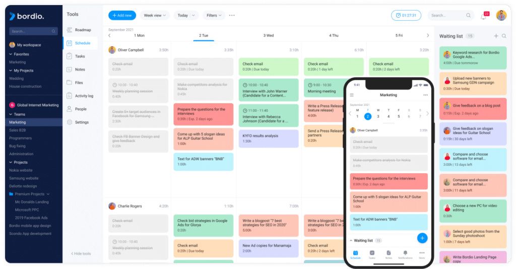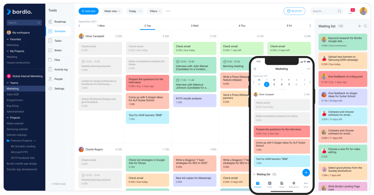 The platform allows you to organize all your tasks in one place and set due dates and notifications so you never miss an important deadline. Bordio’s adaptability and practicality make it a popular choice for busy individuals and teams alike who want to stay on their schedules and achieve their goals.