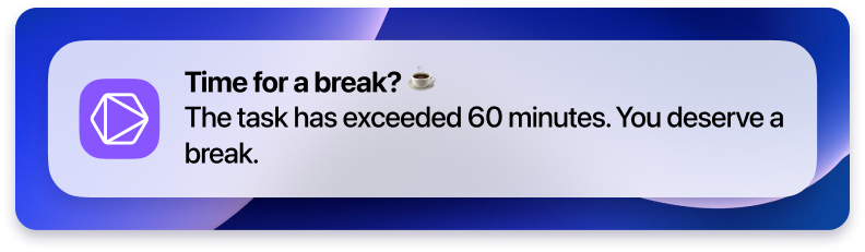 Reminding to track can be tricky. That’s why Timeular has customized reminders, which can also be used for the Pomodoro technique. For example, if you want to work in 25-minute chunks and take 5 minutes to break, you can set custom reminders to stop tracking every 25 minutes.