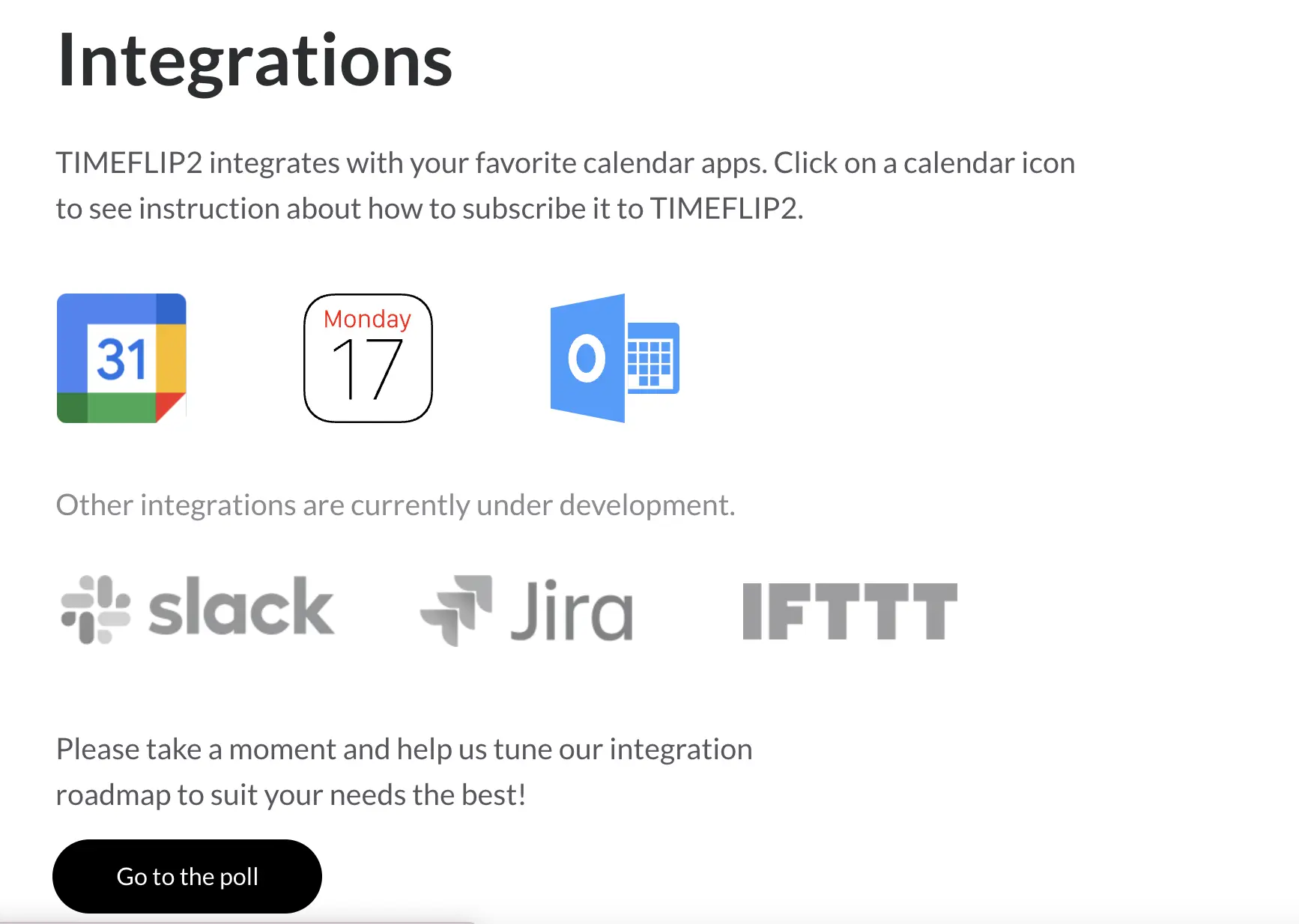 Timeflip2 integrates with Google, Apple, and Outlook Calendars. Nevertheless, the instructions for connecting the calendars with Timeflip2 are not very clear. On the website, they directly link the support pages of Google, Apple, and Microsoft without explicitly explaining how to set up the integrations. It is possible to import Timeflip2’s tracked entries in calendars (one-way integration). Additionally, Timeflip2 will soon connect to Slack, Jira, and FTTT.