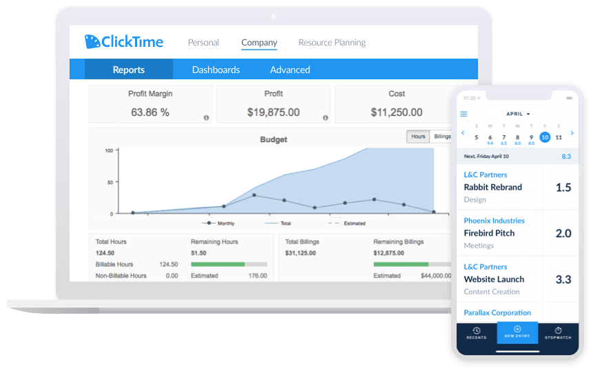 A reliable time tracker for consultants, ClickTime is a time tracking and expense management software designed to help companies and workers efficiently manage their projects, resources, and budgets.