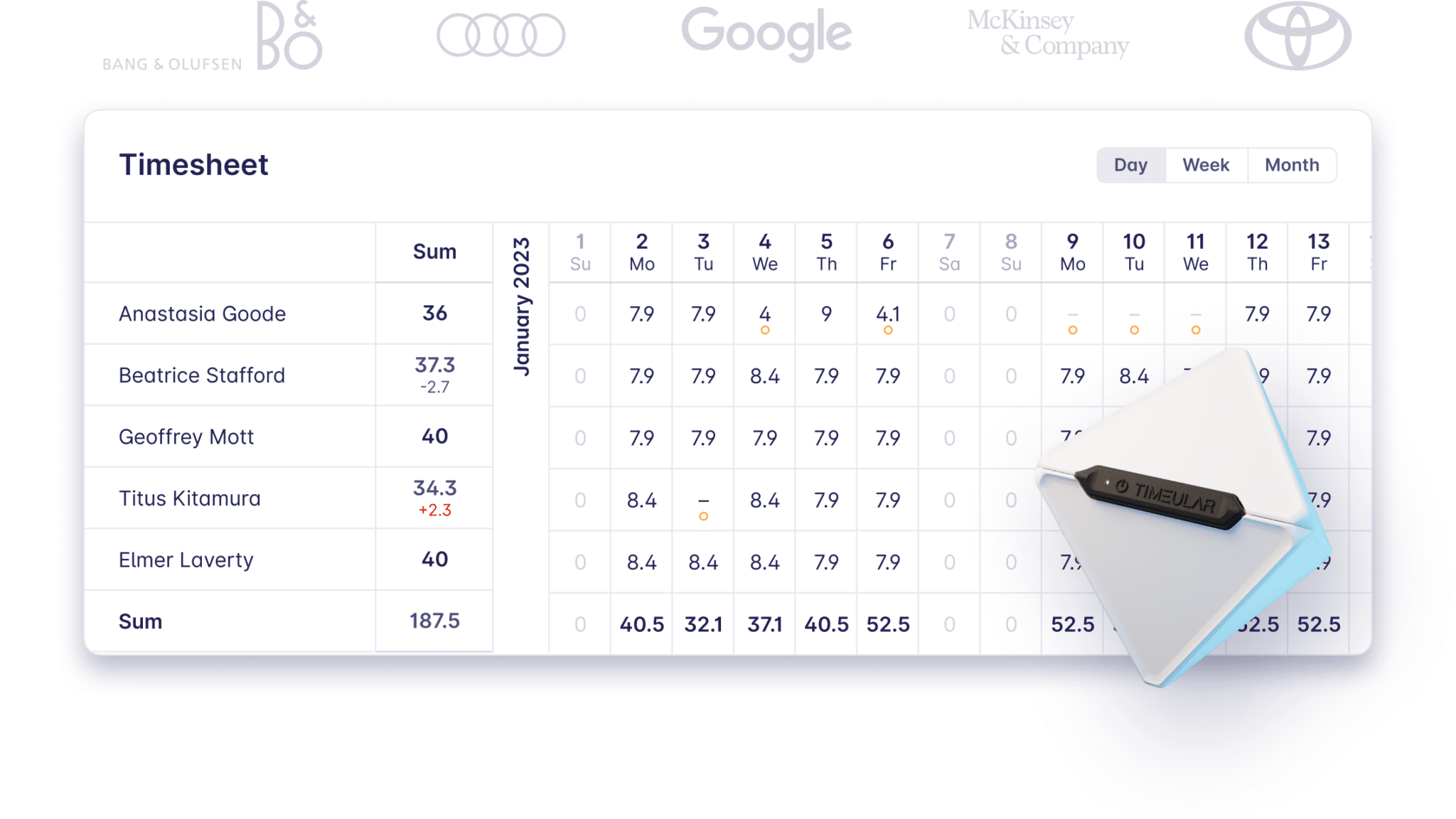 Timeular is the time tracking tool embraced by over 50,000 teams that rediscovered the joy and accuracy of time tracking.