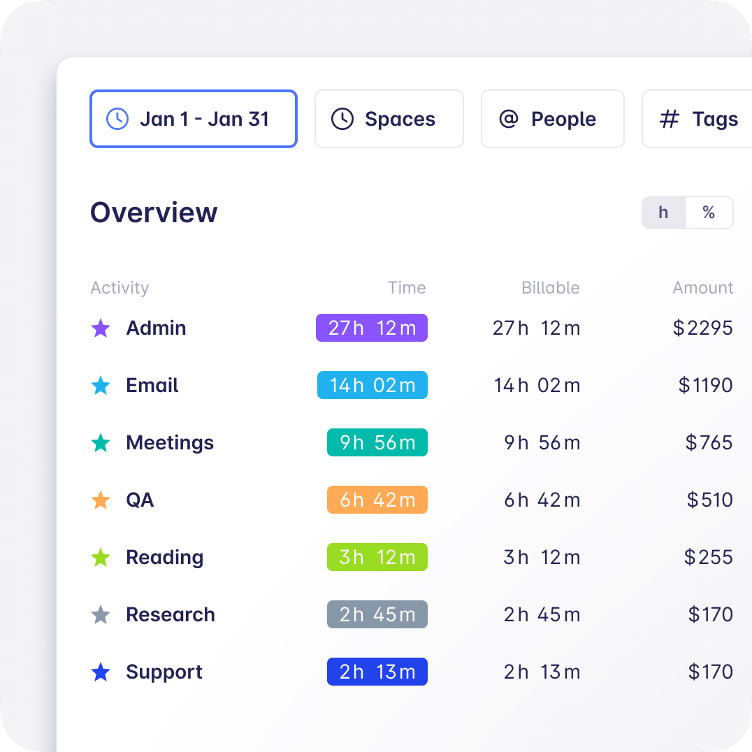 Set hourly rates and project budgets for accurate time tracking. Get notified as you approach limits to prevent undercharging.