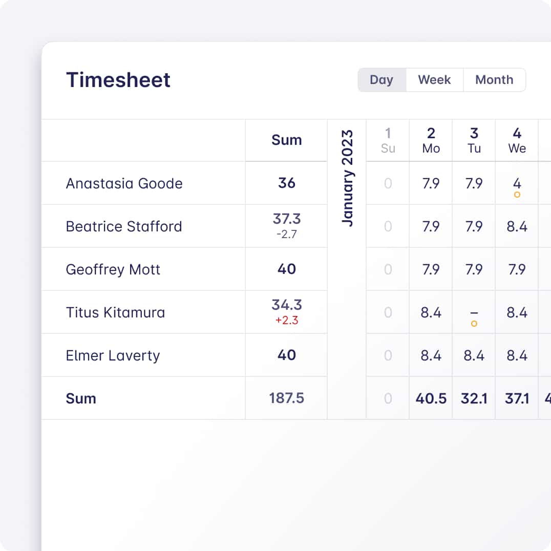Track paid leave, sick leave, and all other leave types. Plus, over- and minus-hours.
