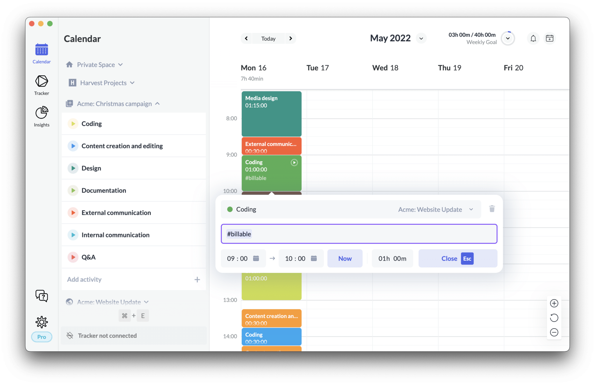 You can show/hide the data in the Calendar view using the CMD/CTRL+G key. - Our notes field just got much smarter, suggesting you which tags to add based on similar past time entries. Is this AI? Marketing people would say yes, engineers might shrug. Regardless, it’s incredibly useful, right? 🙂