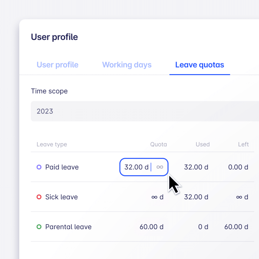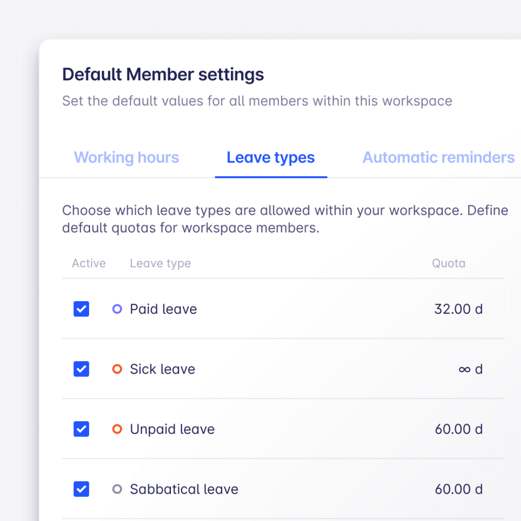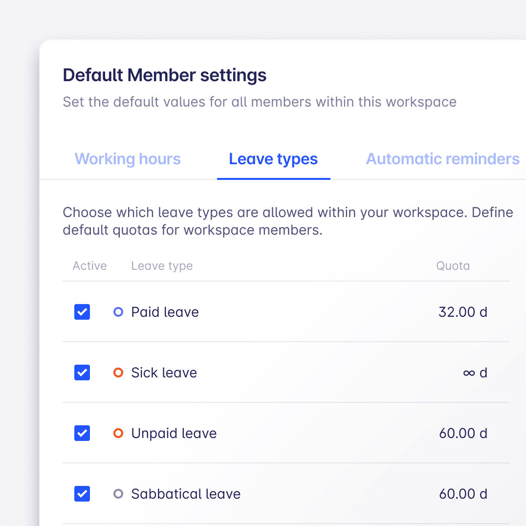 - Admins can now set quotas per leave type for each employee individually in the Settings > Workspaces > Members area
