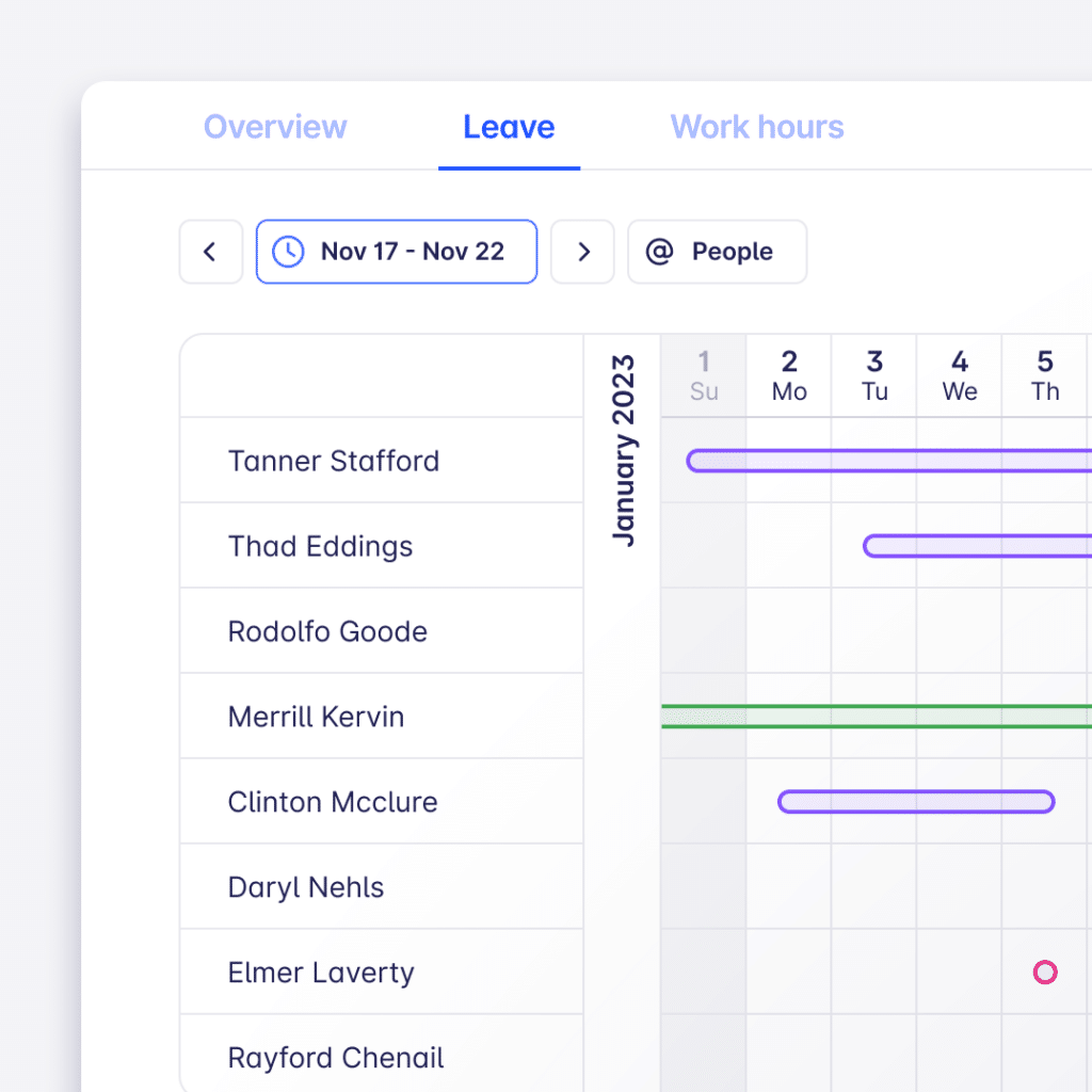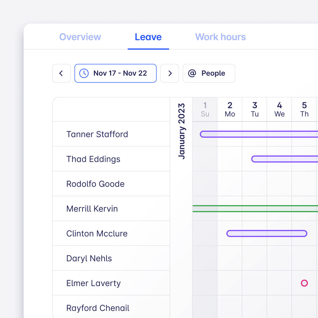 You and your workspace admins will be able to see reports about any leave types in the Insights section. This is just V1 and we’re looking to hear your feedback about what you need in V2. - You asked for more reports, we give you more reports. You’ll find two new views about Requested leave and Work hours. Work hours report, what? Read on to get your payroll and HR department excited 🙂
