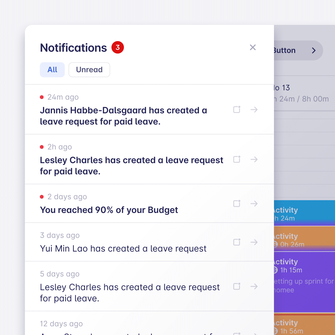 - Never miss a leave request or update again. We’ve added a new notification center in the main menu-sidebar. It will notify admins and members about new leave requests, approvals, changes, and deletions.
